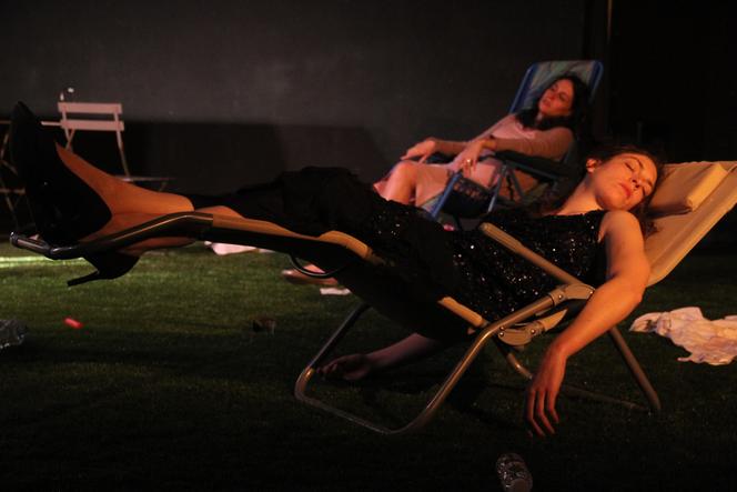 El césped verde es fresco como una primavera incipiente. En su centro, una cabina de cartón y papel, a los lados, lánguidas tumbonas. En este ambiente picante, se entromete un drama de sabor amargo: la agonía de los seres queridos. Elsa Granat, autora, actriz y directora, ha convertido su experiencia personal (la muerte de sus padres) en una explosiva ficción.
