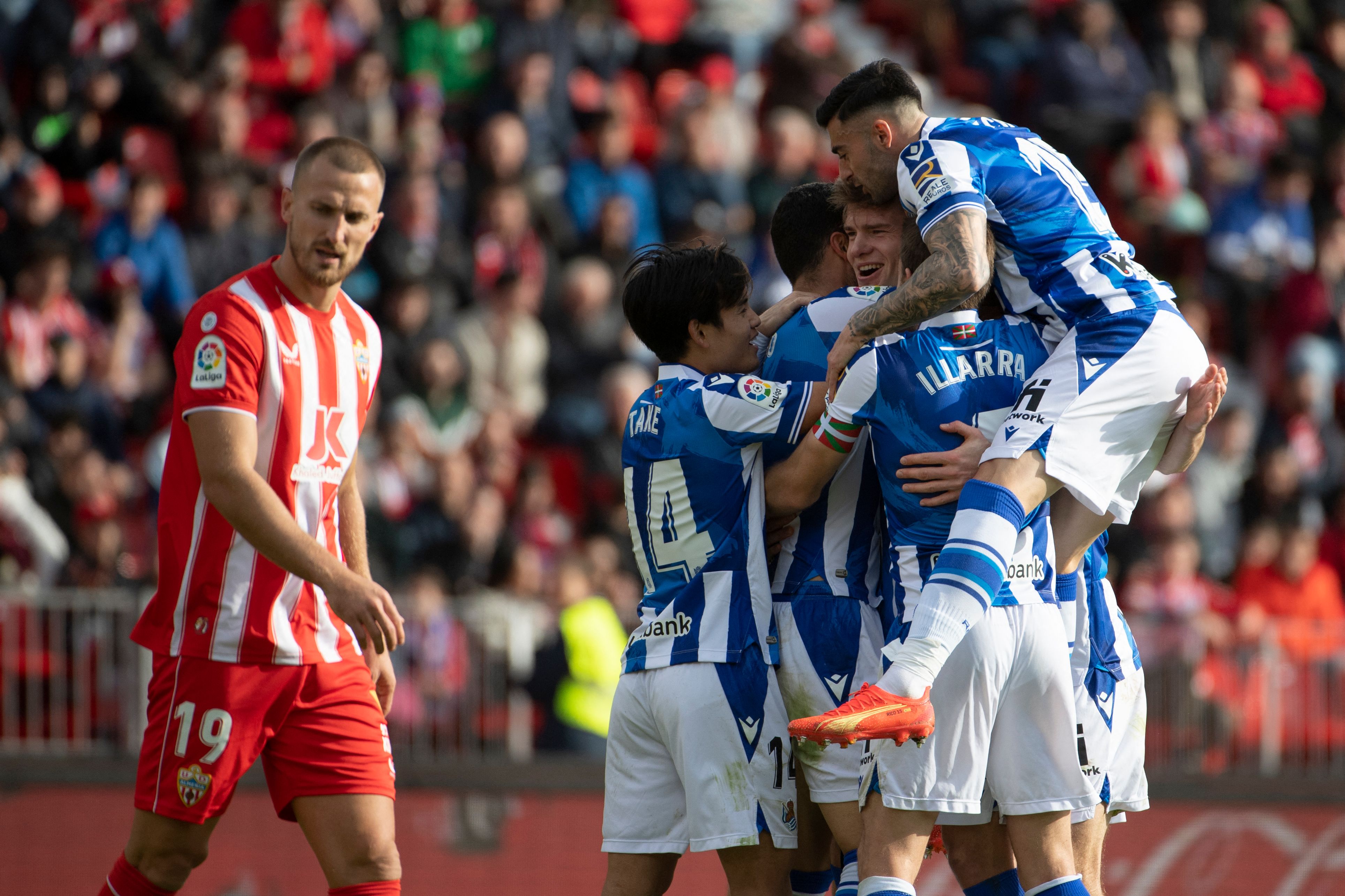 Luego controle por un lado, el txuriurdin, y descontrol por el otro, el blanquirrojo. Los dos equipos hicieron todos los cambios, pero por distinto motivo. Los de la Real para dosificar esfuerzos, que en nada llega el derbi contra el Athletic; los del Almería para tratar de cambiar algo, pero ni el viento cambió. Siempre sopló a favor de los vascos, que siguen ahí, pisando la moqueta de la zona noble.