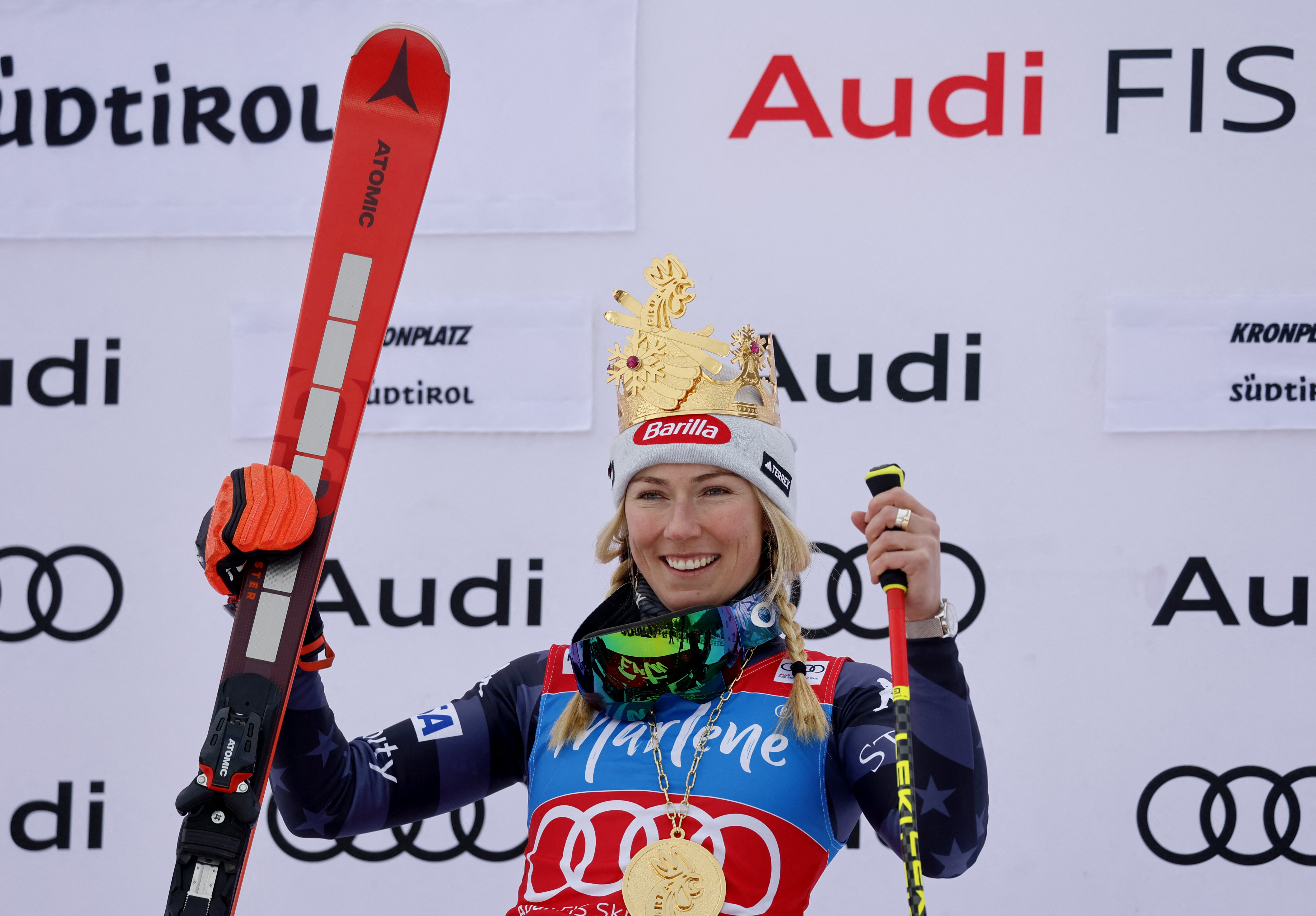 Shiffrin puede alcanzarlos antes de los Campeonatos del Mundo de Courchevel/Meribel (6-19 de febrero) si gana las tres pruebas femeninas de la Copa del Mundo programadas hasta ese momento: el miércoles de nuevo en Kronplatz en eslalon gigante y el sábado y el domingo en Spindleruv Mlyn (República Checa) en eslalón. “No sé qué decir en este momento…”, dijo el número uno del Mundo a Eurosport tras su novena victoria de la temporada (cuatro en el eslalon, cuatro en el gigante y una en el super-G). La esquiadora prefirió tener unas palabras para los preparadores de la pista: «Estas son las mejores condiciones que hemos tenido esta temporada en una carrera», dijo.